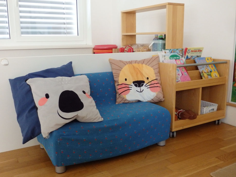 Auf dem Sofa können die Kinder zu Ruhe kommen und sich in angenehmer Atmosphäre ein Buch anschauen.